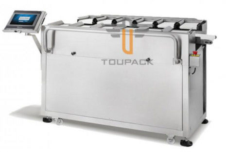 ميزان حزام ذكي بـ 12 رأسًا من نوع PLC لوزن الأسماك المجمدة والمأكولات البحرية المجمدة الأخرى في تطبيقات معالجة الأغذية.