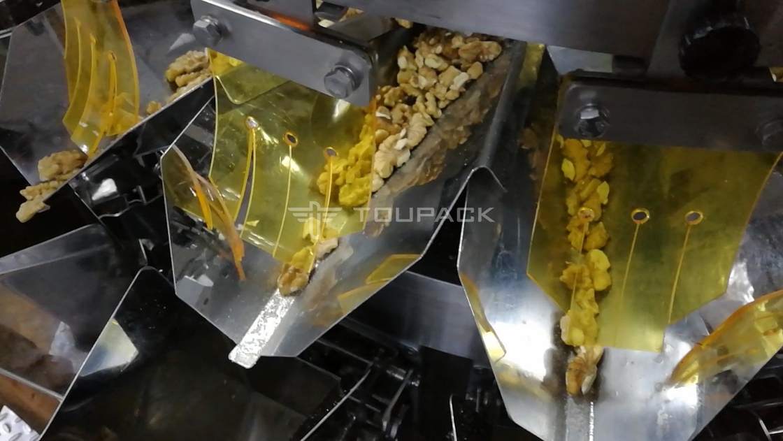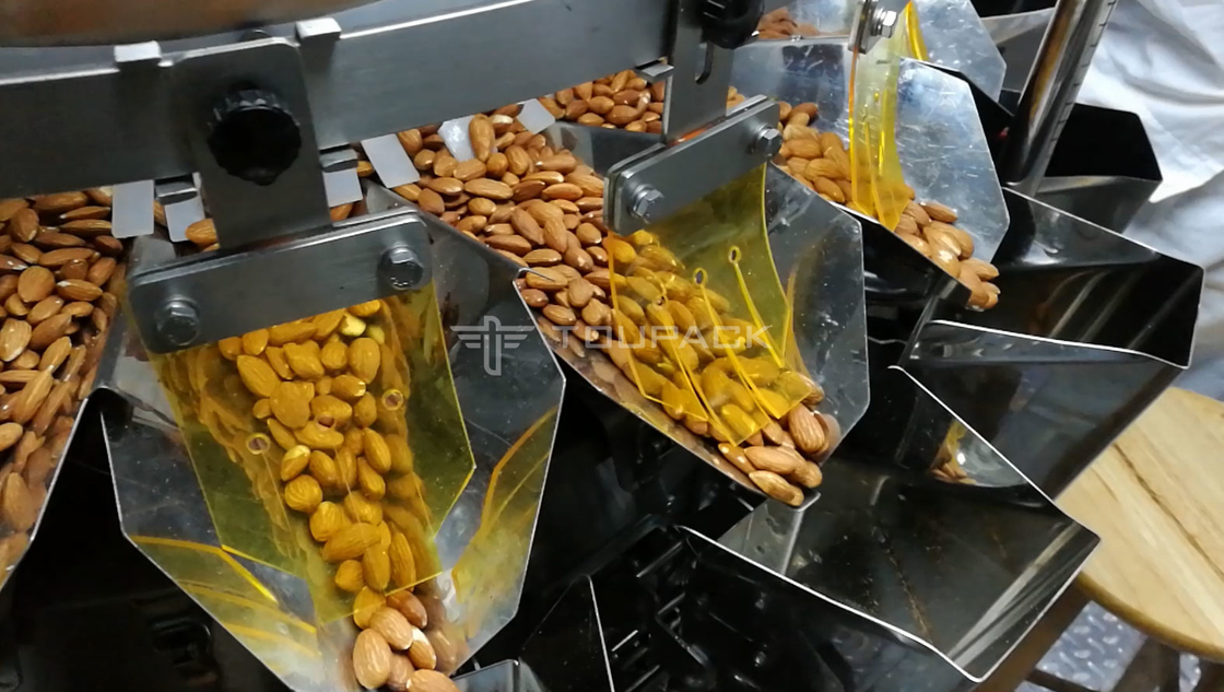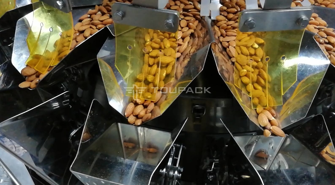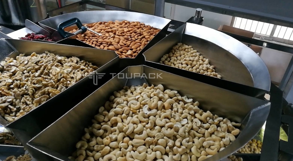 وزن وتعبئة الحلويات والأطعمة الوجبات الخفيفة والمكسرات والبقوليات والأطعمة المجففة وأطعمة الحيوانات الأليفة ورقائق البطاطس والمكسرات الشوكولاتية والعلف والحبوب والفلفل والمنتجات المماثلة.